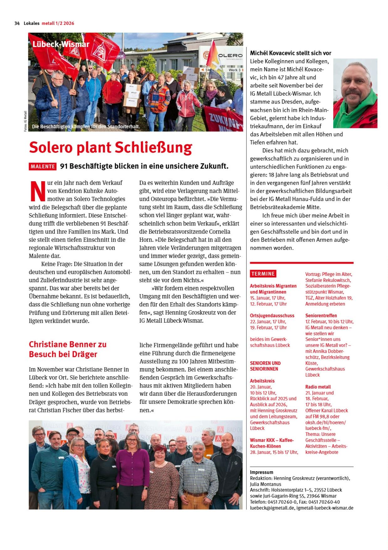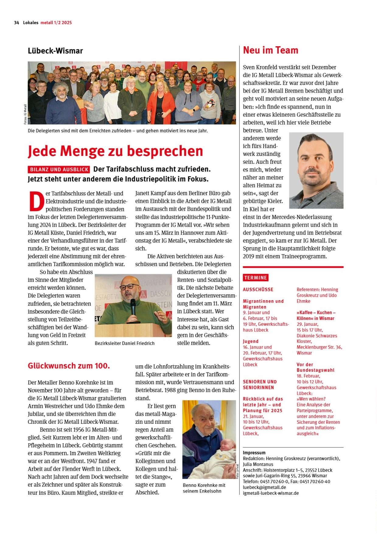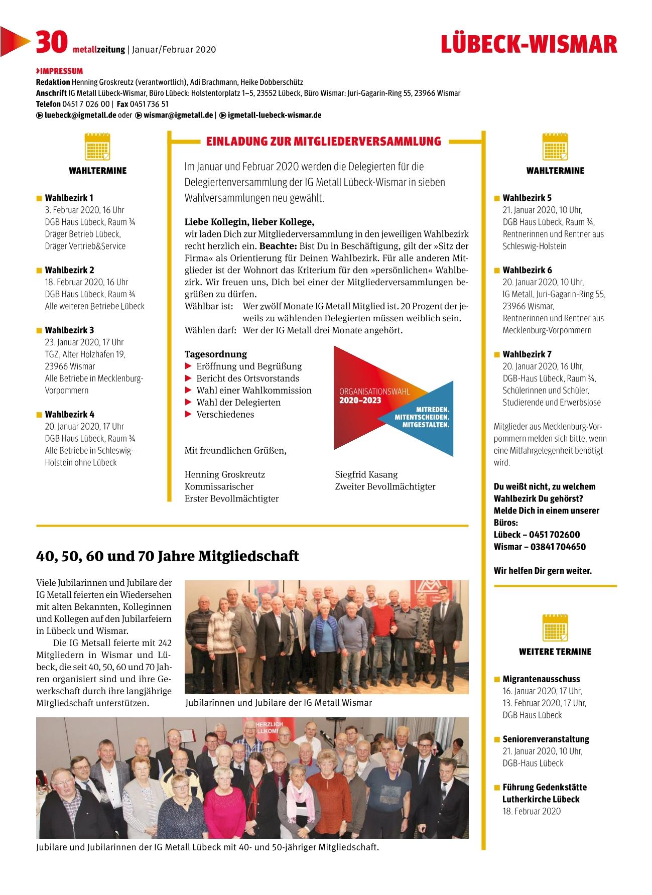 Hier findet ihr die Lokalseite der "METALL - Dein Magazin" der IG Metall Lübeck-Wismar